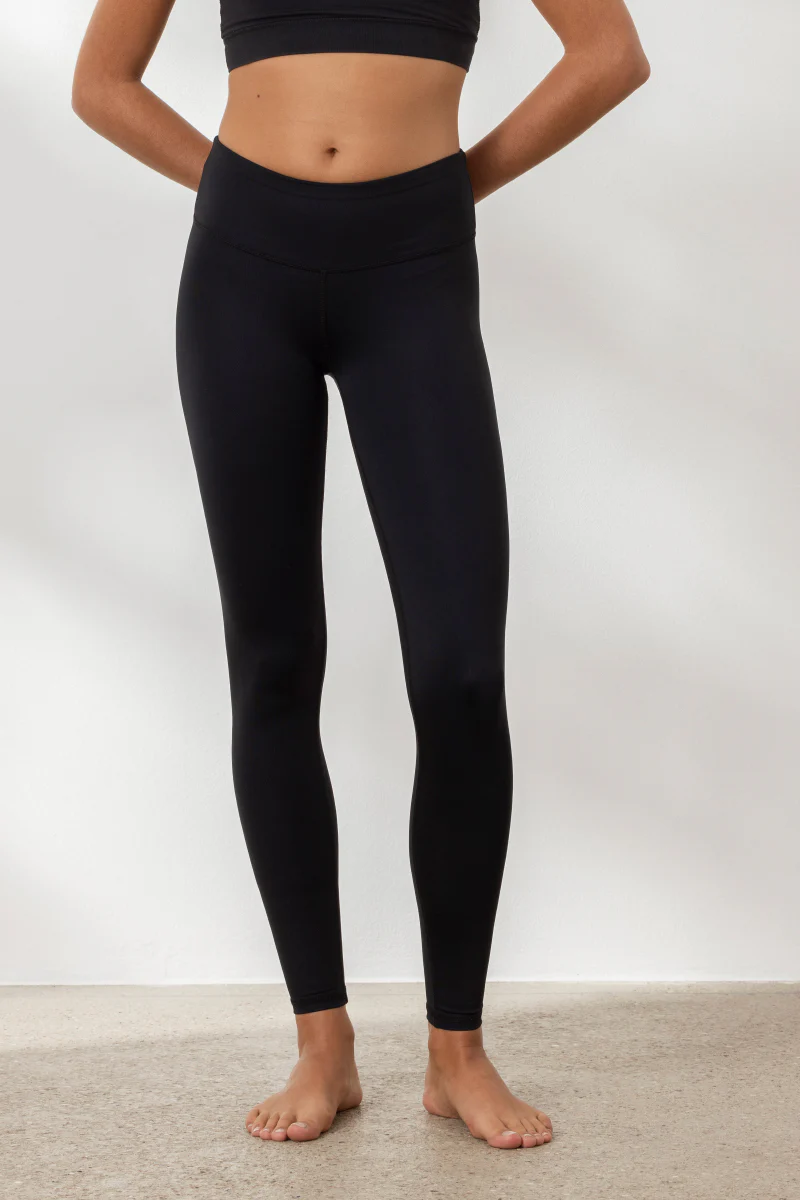 A timeless staple, these sleek, black leggings are designed for versatility, offering a minimalist look with maximum performance. The compressive fit supports movement while maintaining comfort. Crafted from a breathable polyamide-elastane blend, they provide moisture control and full mobility during high-intensity workouts or yoga practice.